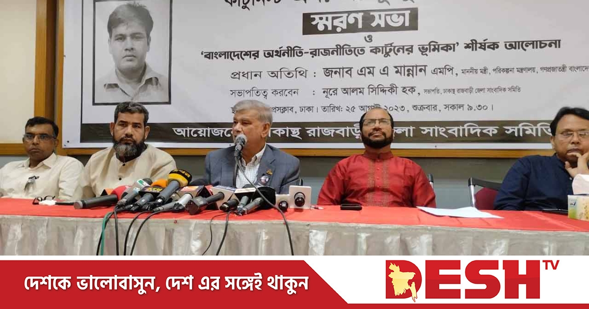 শুক্রবার (২৫ আগস্ট) সকালে জাতীয় প্রেসক্লাবের তফাজ্জল হোসেন মানিক মিয়া মিলনায়তনে ঢাকাস্থ রাজবাড়ী জেলা সাংবাদিক সমিতি আয়োজিত সমিতির প্রয়াত সাধারণ সম্পাদক কার্টুনিস্ট এম. এ. কুদ্দুসের সম্মানে স্মরণসভা ও ‘বাংলাদেশের অর্থনীতি-রাজনীতিতে কার্টুনের ভূমিকা’ শীর্ষক আলোচনা অনুষ্ঠানে তিনি এসব কথা বলেন।