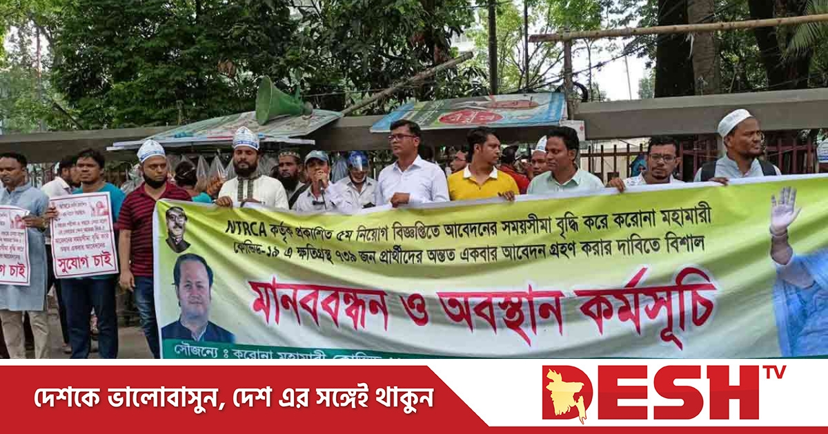 মানববন্ধনে তারা আরও বলেন, আমরা জানতে পেরেছি বেসরকারি শিক্ষাপ্রতিষ্ঠানে ৯৬ হাজার ৭৩৬ শূন্যপদে শিক্ষক নিয়োগের ৫ম নিয়োগ বিজ্ঞপ্তিতে ১৬ ও ১৭তম নিবন্ধনধারী ২৪ হাজারেরও কম প্রার্থী আবেদন করেছে। অথচ এনটিআরসিএ’র নিবন্ধনে পাস করে আমরা ১৭তম শিক্ষক নিবন্ধনকারীর কপাল পুড়েছে।