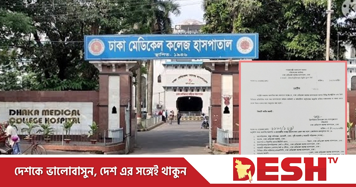 গত মঙ্গলবার ঢামেক হাসপাতালের পরিচালক ব্রিগেডিয়ার জেনারেল মো. আসাদুজ্জামানের স্বাক্ষরিত এক নোটিশে বিষয়টি জানানো হয়।