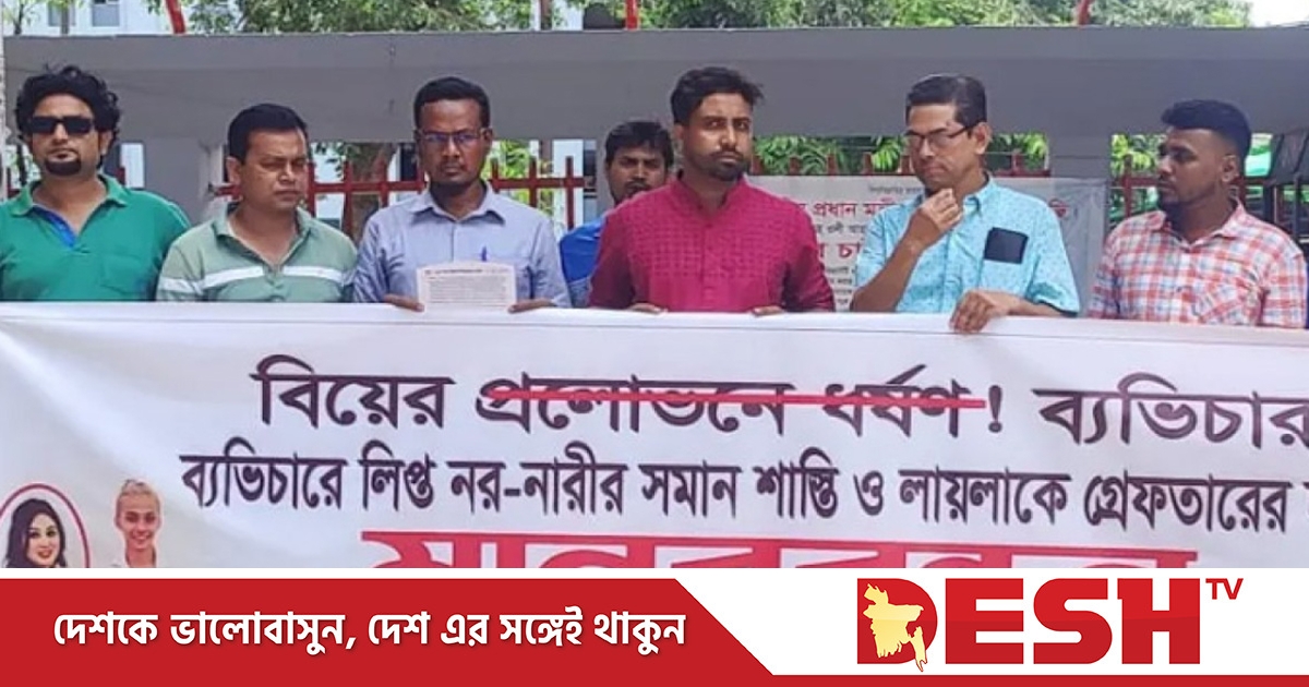 ব্যাভিচারে লিপ্ত নর-নারীর সমান শাস্তি এবং টিকটকার লায়লা আখতার ফারহাদকে গ্রেপ্তারের দাবিতে মানববন্ধন কর্মসূচি পালন করেছে নারী ও পুরুষদের আইনগত সমঅধিকার প্রতিষ্ঠায় কাজ করা ‘এইড ফর মেন ফাউন্ডেশন’ নামের একটি সংগঠন।