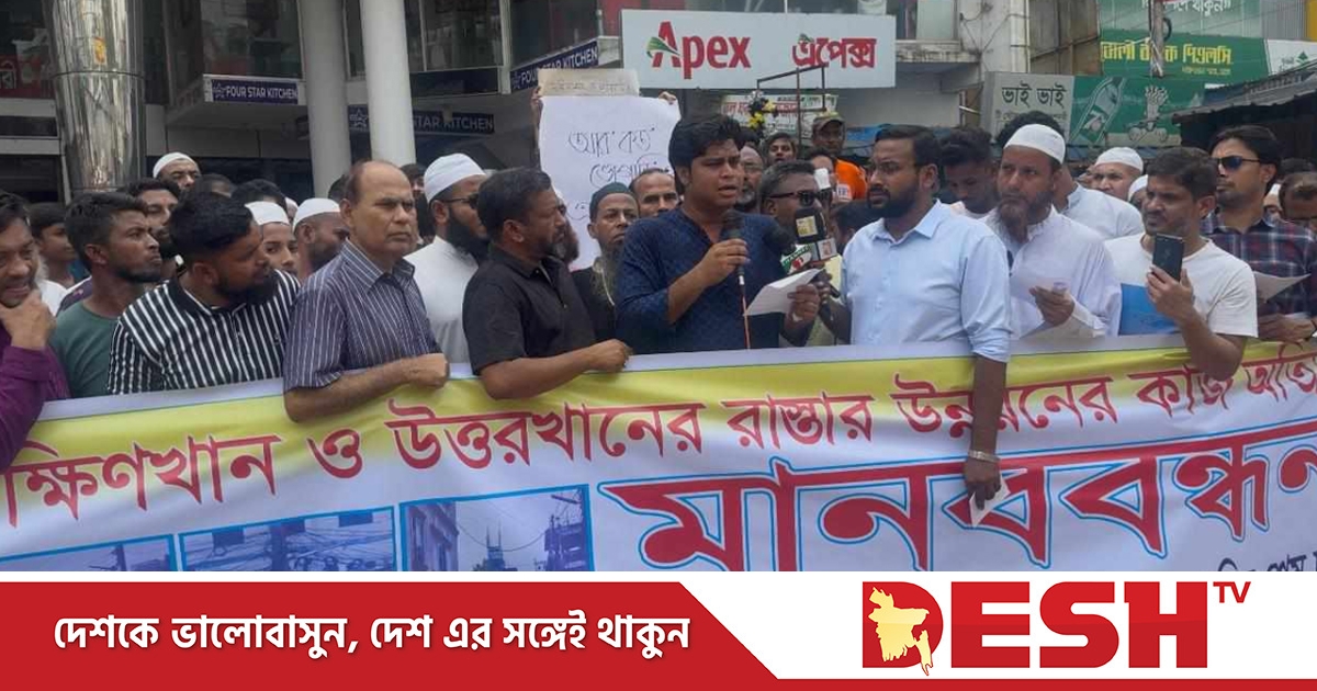 শুক্রবার (১১ অক্টোবর) রাজধানীর দক্ষিণ খান বাজারে দক্ষিণখান ও উত্তরখান বাসীর আয়োজনে রাস্তার উন্নয়ন কাজ দ্রুত শেষ করা ও দুর্ভোগ নিরসনে মানববন্ধন আয়োজন করা হয়। এতে এলাকাবাসী তাদের বক্তব্যে নানা অভিযোগ ও ভোগান্তির কথা তুলে ধরেন।