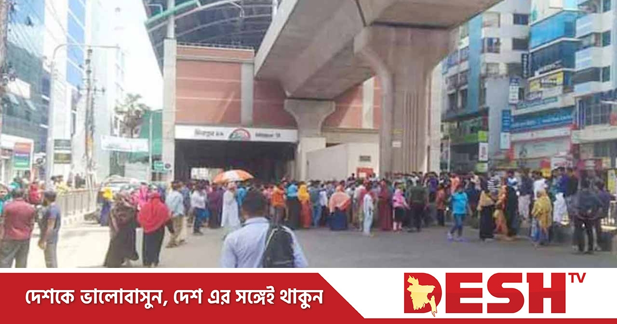 রাজধানীর মিরপুর ১১ নম্বরে সড়ক অবরোধ করে বিক্ষোভ করে বিভিন্ন পোশাক কারখানার শ্রমিকরা।