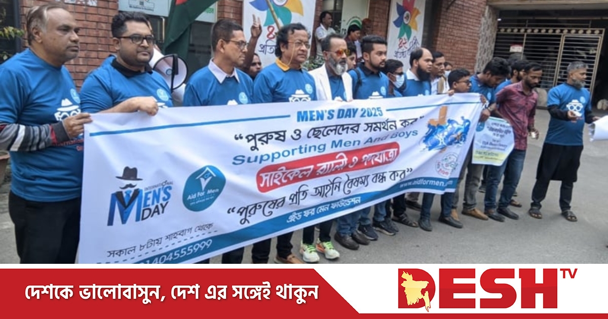 আন্তর্জাতিক পুরুষ দিবস উপলক্ষে পুরুষের প্রতি আইনি বৈষম্য বন্ধের দাবিতে সাইকেল র্যালি, শোভাযাত্রা ও আলোচনা সভা করেছে ‘এইড ফর মেন ফাউন্ডেশন’। বুধবার দিনব্যাপী আয়োজনগুলো অনুষ্ঠিত হয়। সংগঠনটি বলছে, সমাজে পুরুষের প্রতি অবহেলা ও বৈষম্য চরম পর্যায়ে পৌঁছেছে, যা নিয়ে এখনই সচেতনতা বাড়ানো জরুরি।