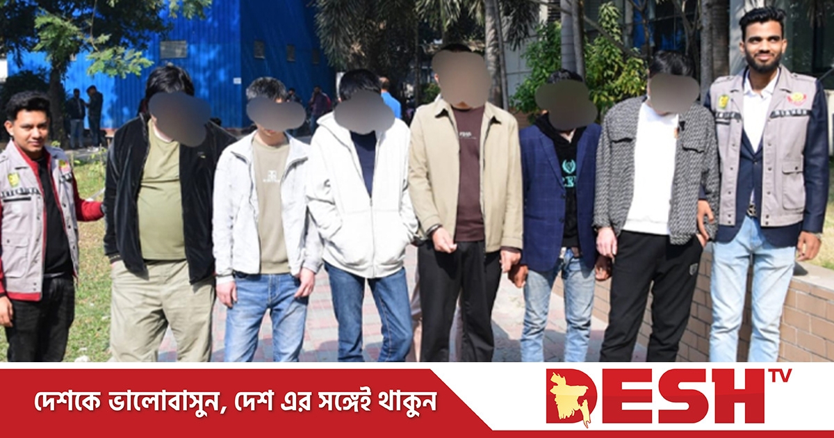 গ্রেপ্তাররা হলেন- চীনা নাগরিক চেন লিং ফেং, জেং কং, জেং চাংকিয়াং, ওয়েন জিয়ান কিউ ও হুয়াং ঝেং জিয়াং এবং মো. জাকারিয়া, নিয়াজ মাসুম ও কামরুল হাসান ওরফে হাসান জয়।