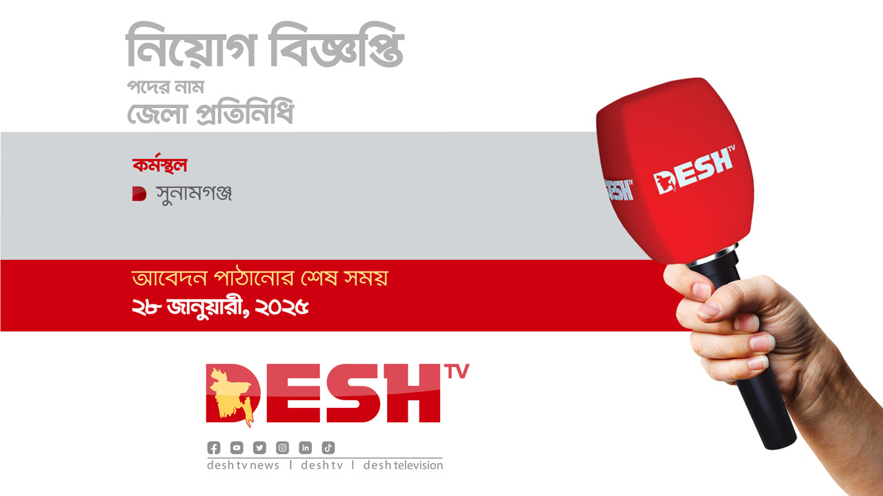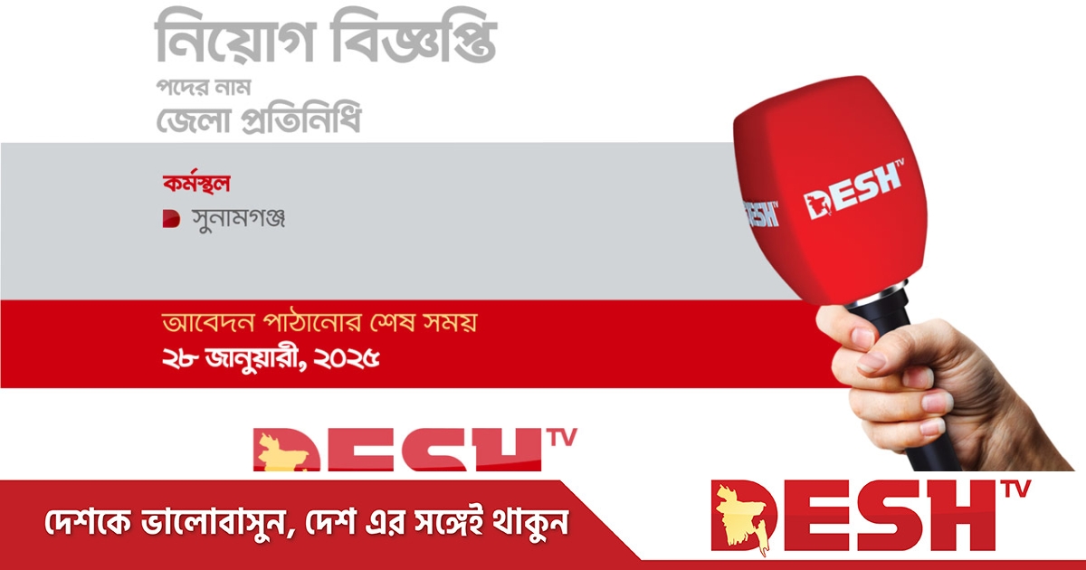 পদের নাম : জেলা প্রতিনিধি বেতন : আলোচনা সাপেক্ষে কর্মস্থল : সুনামগঞ্জ দায়িত্বসমূহ : ১. সহজ ভাষায় প্রতিবেদন তৈরি করা । ২. সাংবাদিকতা পেশার নিয়মাবলী মেনে চলা । ৩. জাতীয় সমসাময়িক ঘটনা সম্পর্কে অবগত থাকা । ৪. নতুন বিষয় সম্পর্কে জানার আগ্রহ থাকা । ৫. যে কোন পর্যায়ের ব্যক্তির সঙ্গে সুসম্পর্ক রাখা ।