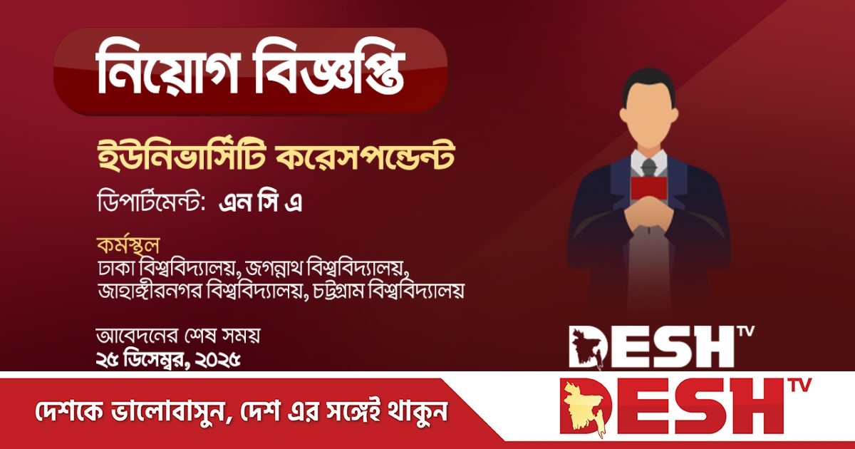আবেদনের নিয়ম: আগ্রহী প্রার্থীদের আগামী ২৫ ডিসেম্বর, ২০২৫ তারিখের মধ্যে নিম্নে প্রদত্ত লিঙ্কে ফর্ম পূরণ ও জীবনবৃত্তান্ত (সিভি) পাঠাতে হবে। আবেদনের লিংক: https://tinyurl.com/university23december25