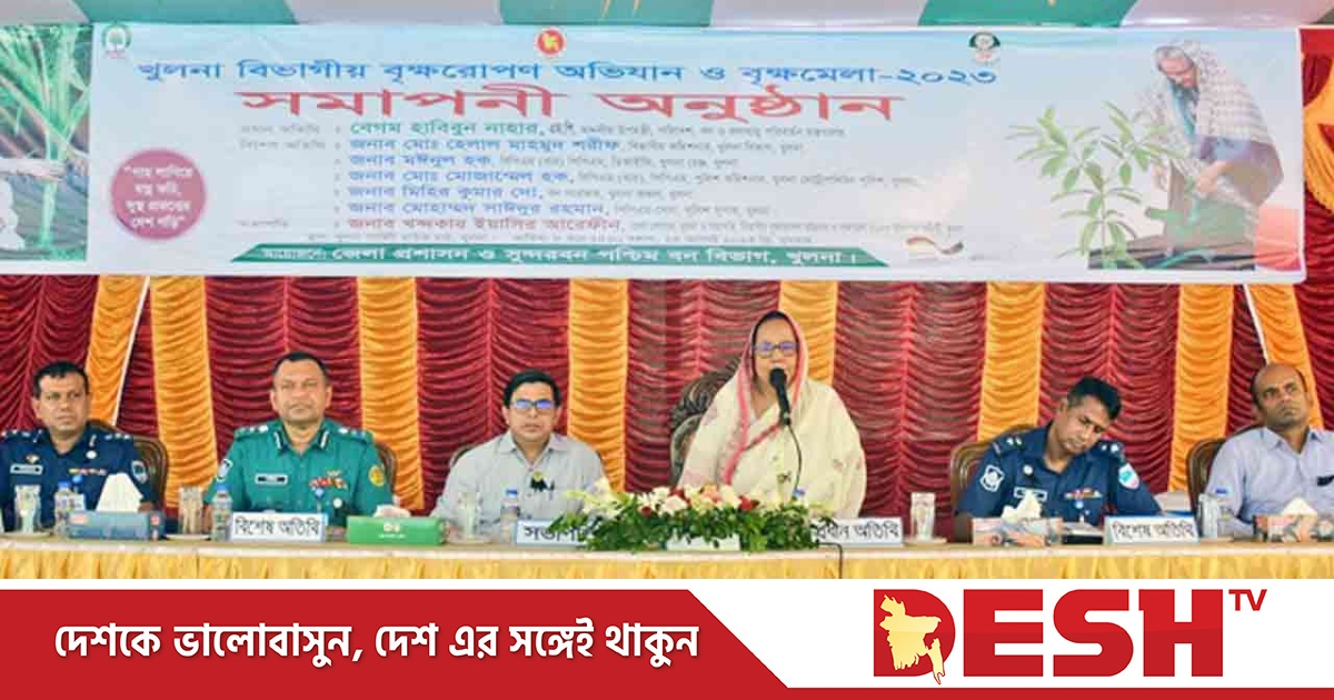 বুধবার (২৩ আগস্ট) দুপুরে সার্কিট হাউস মাঠে মেলা প্রাঙ্গণে খুলনা বিভাগীয় বৃক্ষরোপণ অভিযান ও বৃক্ষমেলার সমাপনী অনুষ্ঠান অনুষ্ঠিত হয়। এতে প্রধান অতিথি ছিলেন পরিবেশ, বন ও জলবায়ু পরিবর্তন মন্ত্রণালয়ের উপমন্ত্রী বেগম হাবিবুন নাহার।
