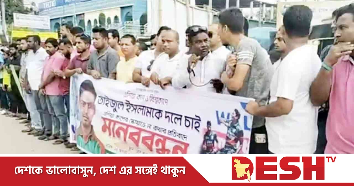 এশিয়াকাপে ক্রিকেটার তাইজুল ইসলামকে না রাখার প্রতিবাদে মানববন্ধন অনুষ্ঠিত হয়েছে।