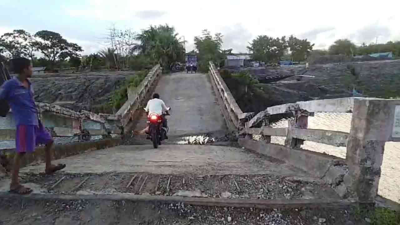 সরেজমিনে দেখা যায় - দুই পাড়ের সংযোগ সড়কে লেগে থাকলেও মাঝের পিলার দুটি ভেঙ্গে পড়ে ব্রিজটা ঝুলে আছে পানির উপর। নদীতে পানি বৃদ্ধি পেলেই ব্রীজের মাঝের অংশ ডুবে থাকে পানির নিচের। সংশ্লিষ্ট দপ্তরে কোন নজর না থাকায় দুপাড়ের বাসিন্দরা স্বেচ্ছাশ্রমের কিছু রাবিশ,বালি আর ইটের খোয়া দিয়ে মাঝের ভাঙ্গা অংশ ভরাট করে রেখে জোড়াতালি দিয়ে চলাচল করছেন এলাকাবাসী।