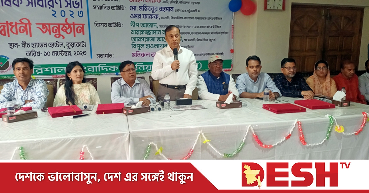 সাগরসৈকত কুয়াকাটায় বিচ হ্যাভেন হোটেলে বর্ণিল আয়োজনে বরিশাল সাংবাদিক ইউনিয়নের দ্বি- বার্ষিক সাধারন সভা অনুষ্ঠিত হয়েছে। রোববার (১০ সেপ্টেম্বর) বেলা ১১টায় কুয়াকাটা বিচ হ্যাভেন হোটেলের হলরুমে বরিশাল সাংবাদিক ইউনিয়নের (জেইউবি) সভাপতি মনিরুল আলম স্বপন খন্দকারের সভাপতিত্বে প্রধান অতিথি হিসেবে বরিশাল সাংবাদিক ইউনিয়নের দ্বি-বার্ষিক সাধারণ সভার উদ্বোধন করেন পানিসম্পদ প্রতিমন্ত্রী জাহিদ ফারুক।