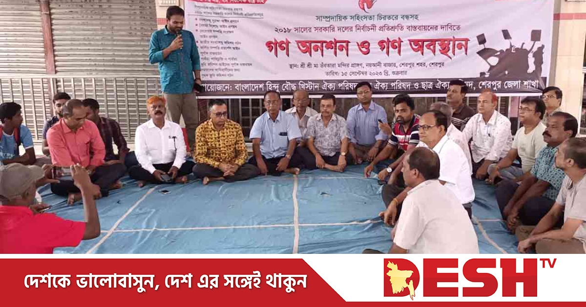 আজ শুক্রবার (১৫ সেপ্টেম্বর) ভোর ৬টা থেকে সন্ধ্যা ৬টা পর্যন্ত বাংলাদেশ হিন্দু-বৌদ্ধ-খ্রিষ্টান যুব ঐক্য পরিষদ শেরপুর জেলা শাখার আয়োজনে ৭ দফা দাবি আদায়ের লক্ষ্যে শুরু হয়েছে গণঅনশন ও গণঅবস্থান কর্মসূচি।
