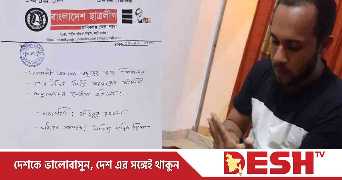 শুক্রবার (১৫ সেপ্টেম্বর) মানিকগঞ্জ জেলা ছাত্রলীগের সভাপতি এম এ সিফাত কোরাইশী সুমন ও সাধারণ সম্পাদক রাজিদুল ইসলাম স্বাক্ষরিত ছাত্রলীগের প্যাডে এ কমিটি ঘোষণা করেন।