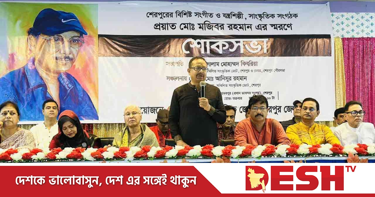 শেরপুরে গীতিকার, সুরকার, যন্ত্রশিল্পী ও সঙ্গীতশিল্পী প্রয়াত খন্দকার মুজিবর রহমানের স্মরণে শোকসভা অনুষ্ঠিত হয়েছে।