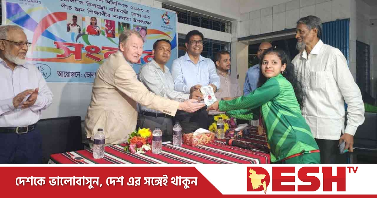 বর্ণাঢ্য আয়োজনের মধ্য দিয়ে জার্মানির বার্লিনে অনুষ্ঠিত স্পেশাল অলিম্পিকে স্বর্ণ ও রৌপ্যপদক জয়ী ভোলাস চিল্ড্রেন স্পেশাল স্কুলের বিজয়ী ৫ শিক্ষার্থীকে সংবর্ধনা দেওয়া হয়েছে।