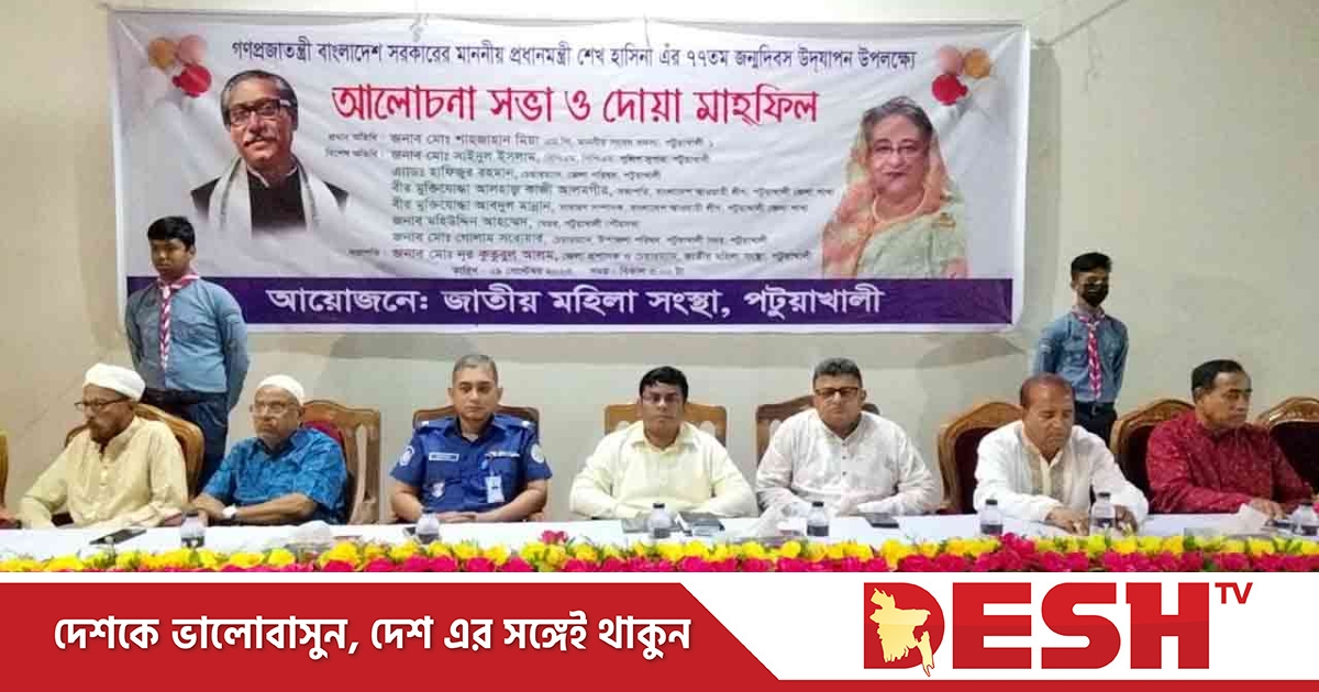 পটুয়াখালীতে প্রধানমন্ত্রী শেখ হাসিনার ৭৭তম জন্মদিন উপলক্ষে জেলা মহিলা সংস্থার আয়োজনে আলোচনা সভা ও দোয়া মাহফিল অনুষ্ঠিত হয়েছে।