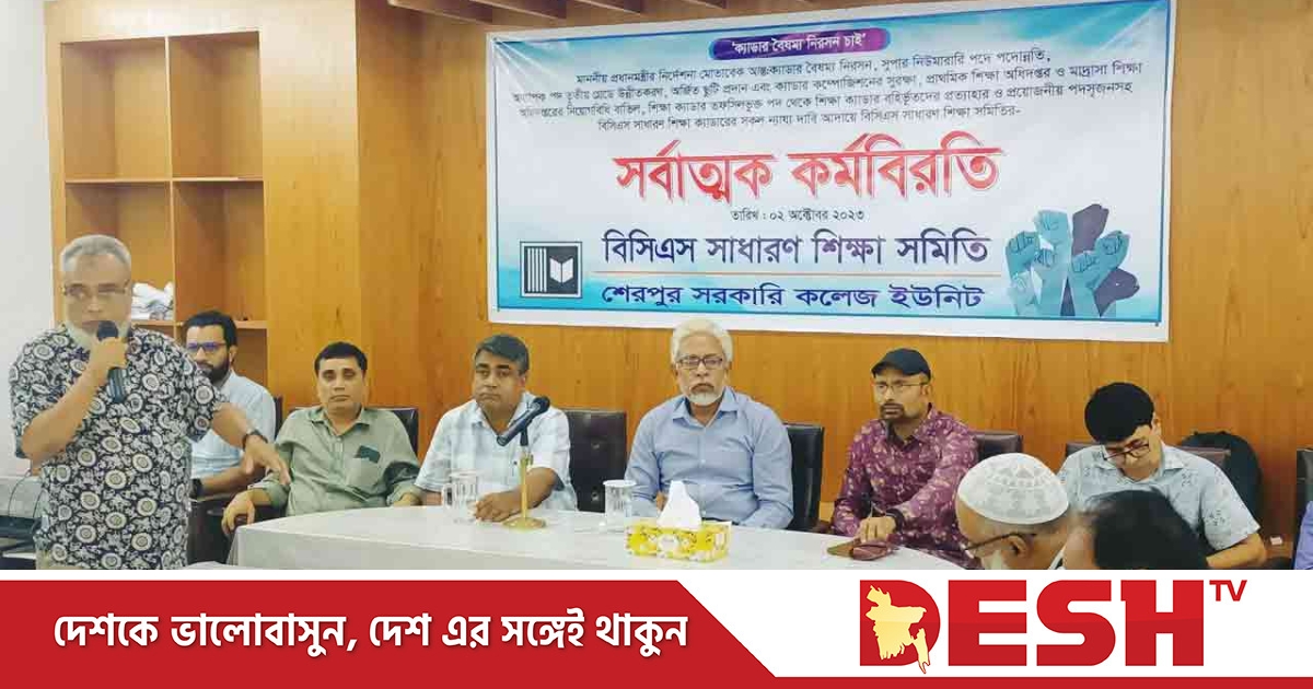 ক্যাডার কম্পোজিশনের সুরক্ষা, পদোন্নতি, পদসৃজন, স্কেল আপগ্রেডেশন ও আন্ত:ক্যাডার বৈষম্য নিরসনসহ বিসিএস সাধারণ শিক্ষা ক্যাডারের দাবিসমূহ আদায়ে সর্বাত্মক কর্মবিরতি পালন করছে শেরপুর বিসিএস সাধারণ শিক্ষা সমিতি।