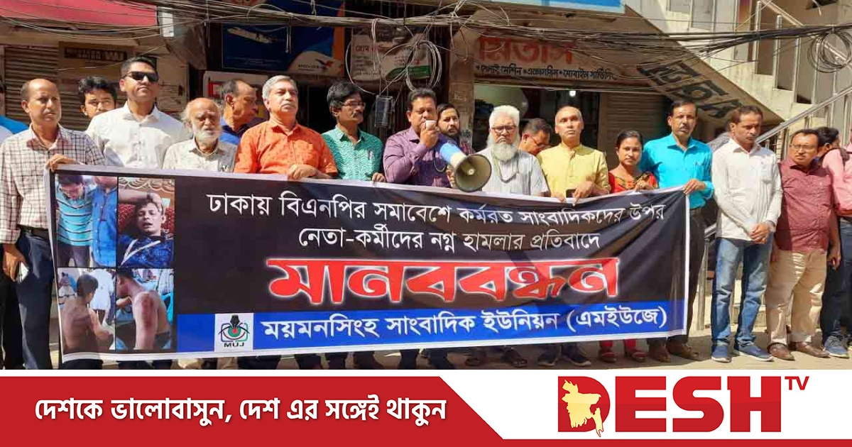 ঢাকায় বিএনপির সমাবেশে বিভিন্ন গণমাধ্যমের অন্তত ৩০ সাংবাদিকের ওপর হালার প্রতিবাদে মানববন্ধন ও প্রতিবাদ কর্মসূচি পালন করেছে ময়মনসিংহের সাংবাদিকরা।