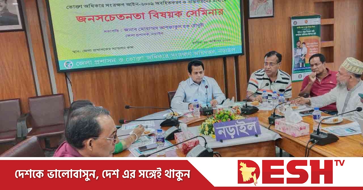 নড়াইল ভোক্তা অধিকার সংরক্ষণ আইন-২০০৯ অবহিতকরণ ও বাস্তবায়নের মাধ্যমে জনসচেতনতা বিষয়ক সেমিনার অনুষ্ঠিত হয়েছে।