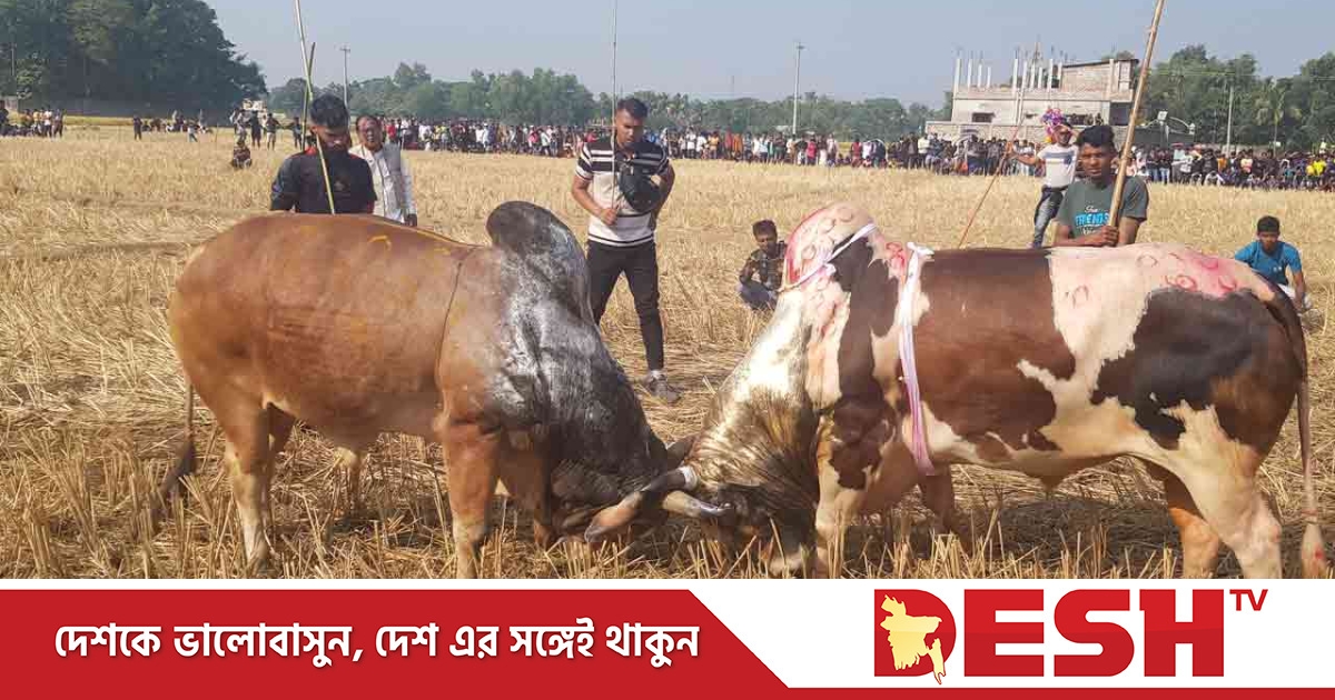 আমন ধান কাটার পর ক্ষেতের জমিতে চারদিকে হাজারো মানুষের অপেক্ষা। সকাল থেকে লড়াই দেখার জন্য আসতে থাকেন উৎসুক দর্শক।