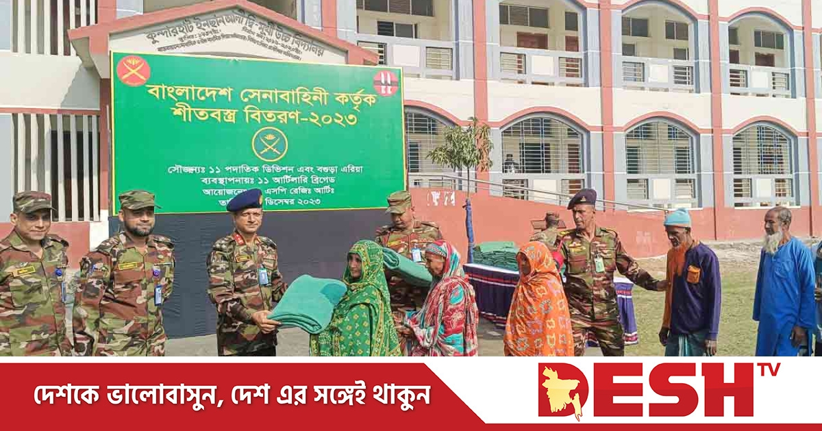 বগুড়ার শাজাহানপুরের রাজবাড়ী রহমানিয়া আলীম মাদরাসা মাঠ ও নন্দীগ্রাম উপজেলার কুন্দারহাট সরকারি প্রাথমিক বিদ্যালয় মাঠ এবং দিনাজপুর জেলার ঘোড়াঘাট এলাকা এই তিনটি স্থানে মোট ১৭৫০ জন শীতার্ত মানুষের মধ্যে সুশৃঙ্খল আয়োজনে কম্বল বিতরণ করে বাংলাদেশ সেনাবাহিনী।