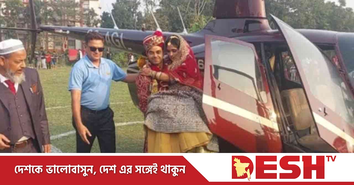 এ সময় আশপাশের এলাকা থেকে হাজারো উৎসুক জনতা হেলিকপ্টার দেখতে ভিড় জমায়। পরে পরিবার ও আত্মীয়-স্বজন বর ও নববধূকে ফুল দিয়ে বরণ করেন।