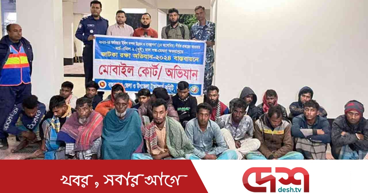 তাদের মধ্যে ২০ জেলের এক মাসের কারাদণ্ড, তিনজনের ১০ হাজার টাকা করে জরিমানা এবং অপ্রাপ্ত বয়স্ক হওয়ায় ছয়জনকে মুচলেকা নিয়ে ছেড়ে দেন ভ্রাম্যমাণ আদালত।