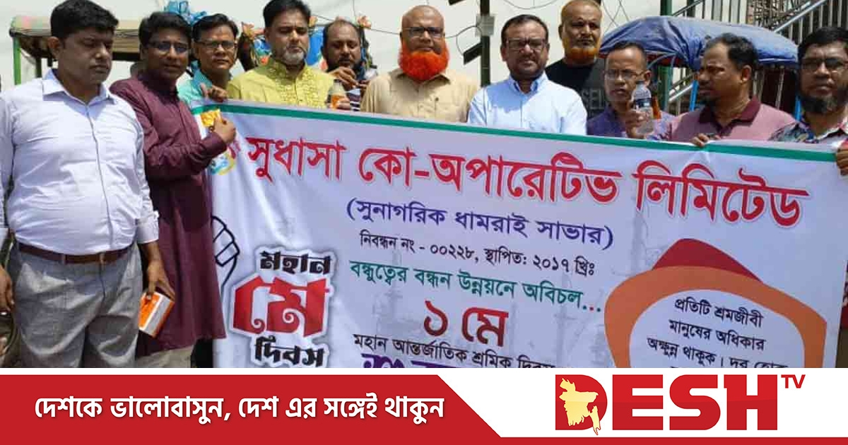 ১ মে মহান মে দিবস উপলক্ষে বিশুদ্ধ পানি ও খাবার স্যালাইন বিতরণ করেছে সুনাগরিক ধামরাই সাভার (সুধাসা) কো-অপারেটিভ লিমিটেড নামের একটি বেসরকারি সেবামূলক সংগঠন।