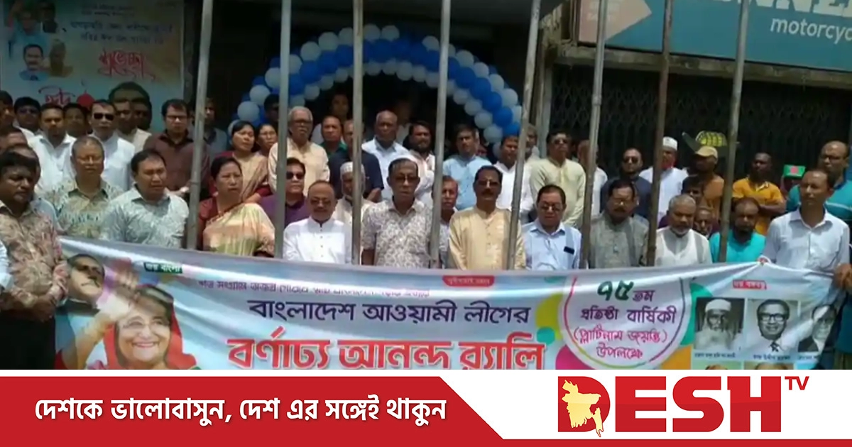 এর আগে জাতীয় সংগীতের মাধ্যমে জাতীয় ও দলীয় পতাকা উত্তোলন করা হয়। প্রতিষ্ঠাবার্ষিকী উপলক্ষে জেলা শহরে বর্ণাঢ্য র্যালী বের করে আওয়ামী লীগের নেতাকর্মীরা।