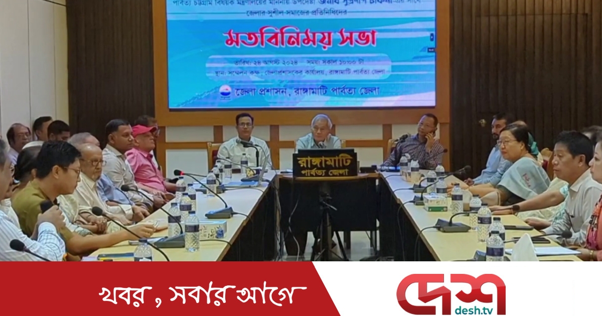 রাঙামাটিতে পার্বত্য চট্টগ্রাম বিষয়ক মন্ত্রণালয়ের উপদেষ্টার সঙ্গে সুশীল সমাজের প্রতিনিধিদের মতবিনিময় সভা অনুষ্ঠিত হয়েছে। সভায় জাতীয় নির্বাচনের পূর্বে জেলা পরিষদগুলোর নির্বাচনের আশ্বাস দিয়েছেন উপদেষ্টা।
