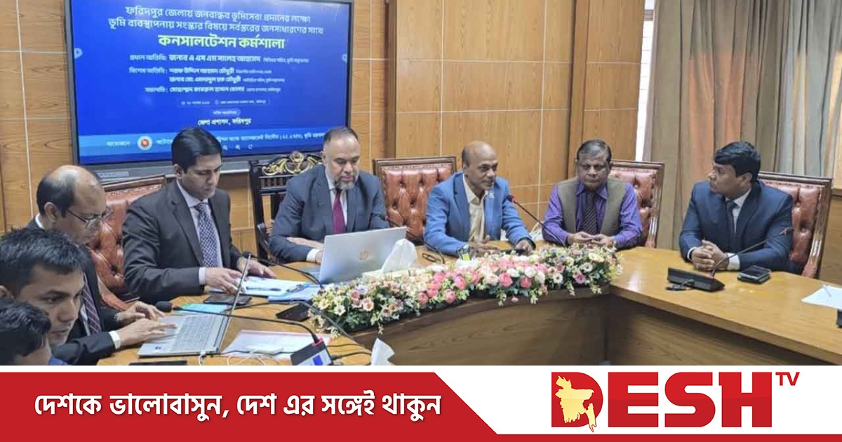 বৃহস্পতিবার(২৮ নভেম্বর) বিকেলে ফরিদপুর জেলা প্রশাসকের কার্যালয়ের সম্মেলন কক্ষে জেলা প্রশাসক কামরুল হাসান মোল্লার সভাপতিত্বে সভায় আরও বক্তব্য রাখেন যুগ্ম সচিব ড. জাহিদ হোসেন, উপ সচিব সেলিম আহমেদ, এমদাদুল হক চৌধুরী, ফরিদপুরের অতিরিক্ত জেলা প্রশাসক সার্বিক ইয়াসিন কবির। এ কর্মশালায় জেলার ভূমি ব্যবস্থাপনার সঙ্গে সংশ্লিষ্ট কর্মকর্তা কর্মচারীগণ উপস্থিত ছিলেন।