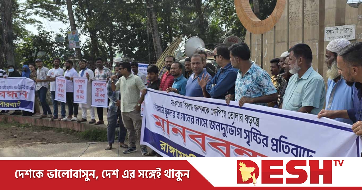 সৌন্দর্য বর্ধনের নামে রাঙামাটি পৌরসভা কার্যালয়ের খোলা মাঠ বন্ধের ষড়যন্ত্রের প্রতিবাদ এবং জায়গাটি উন্মুক্ত রাখার দাবিতে রাঙামাটিতে মানববন্ধন করেছে সচেতন পৌরবাসী। মঙ্গলবার (৩ ডিসেম্বর) সকালে পৌরসভার প্রধান ফটকের সামনে ঘণ্টাব্যাপী এ মানববন্ধন করা হয়।
