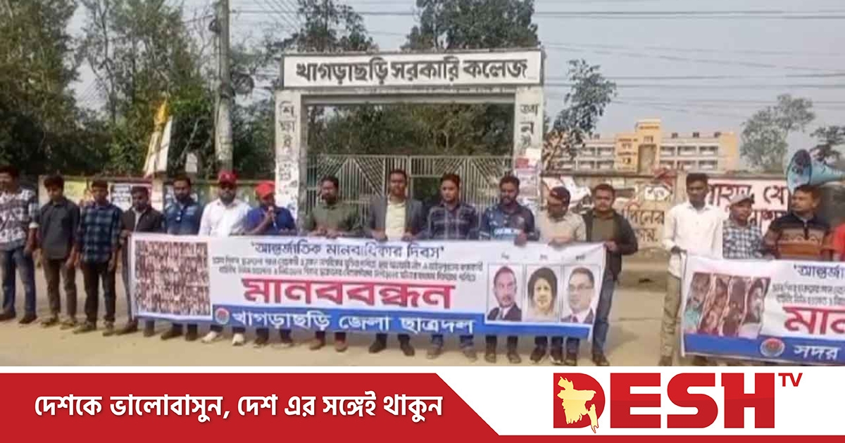 মঙ্গলবার (১০ ডিসেম্বর) সকাল ১১টায় খাগড়াছড়ি সরকারি কলেজ গেটে এ মানববন্ধন করা হয়।