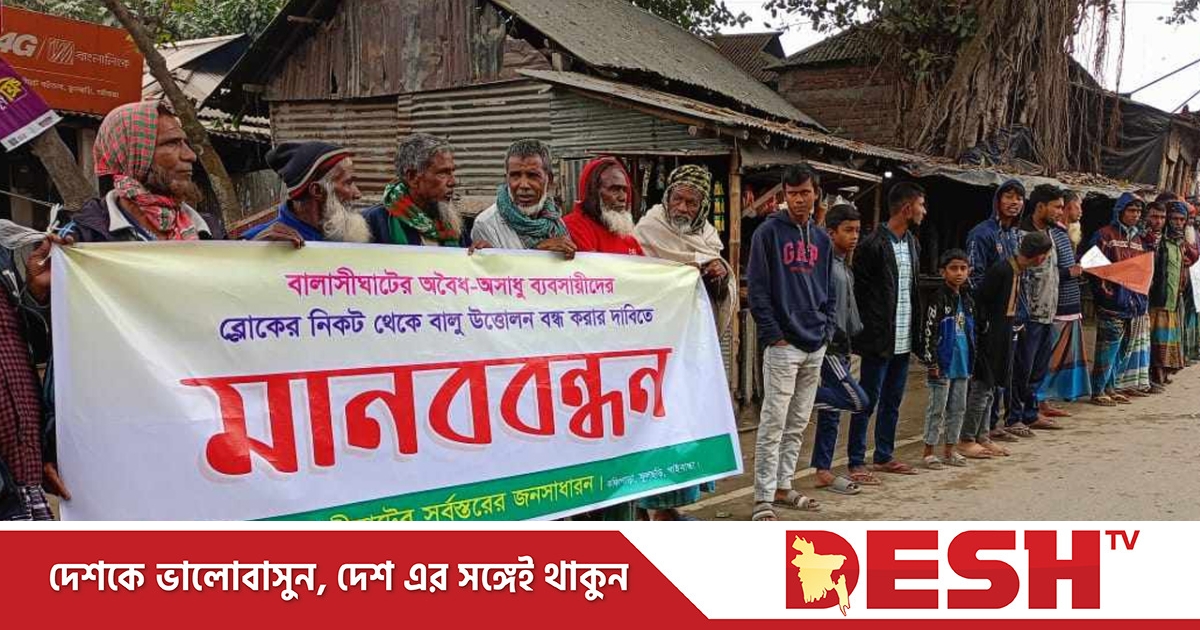 গাইবান্ধার ফুলছড়ির বালাসীঘাটের ব্লকের নিচ থেকে অবৈধভাবে বালু উত্তোলন বন্ধের দাবিতে মানববন্ধন অনুষ্ঠিত হয়েছে। এতে বিভিন্ন শ্রেণি-পেশার শতাধিক নারী-পুরুষ অংশ নেন।