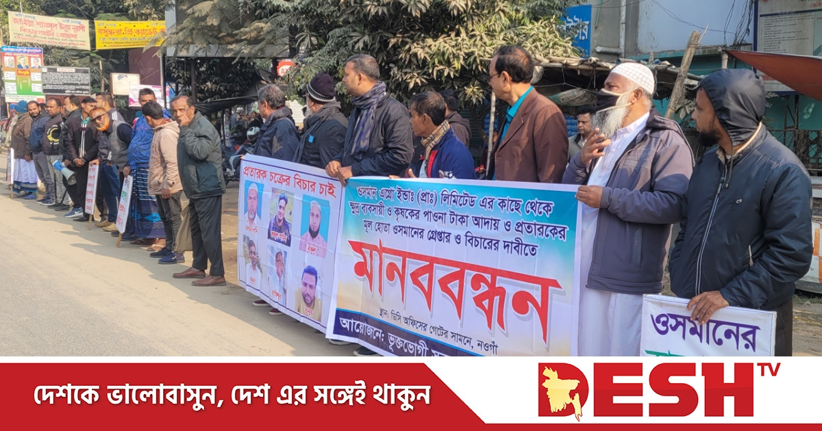 নওগাঁর মহাদেবপুর উপজেলার সবচেয়ে বড় ধান-চাল ব্যবসায়ী ওসমান এগ্রো লিমিটেডের মালিকের কাছ থেকে পাওনা টাকা আদায় ও প্রতারণার মূলহোতা ওসমানকে গ্রেপ্তারের দাবিতে মানববন্ধন ও জেলা প্রশাসকের নিকট স্বারকলিপি প্রদান করেছেন ভুক্তভোগী ব্যবসায়ী ও কৃষকরা।