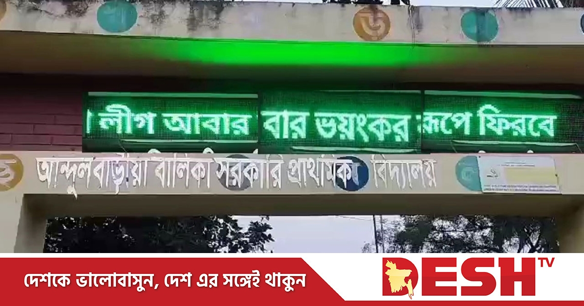 বুধবার (১ জানুয়ারি) সন্ধ্যার পর উপজেলার আন্দুলবাড়িয়া বালিকা সরকারি প্রাথমিক বিদ্যালয়ের মূল ফটকের সাইনবোর্ডের স্ক্রিনে এই লেখা ভেসে উঠতে দেখেন স্থানীয়রা। এরপরই তোলপাড় শুরু হয়।