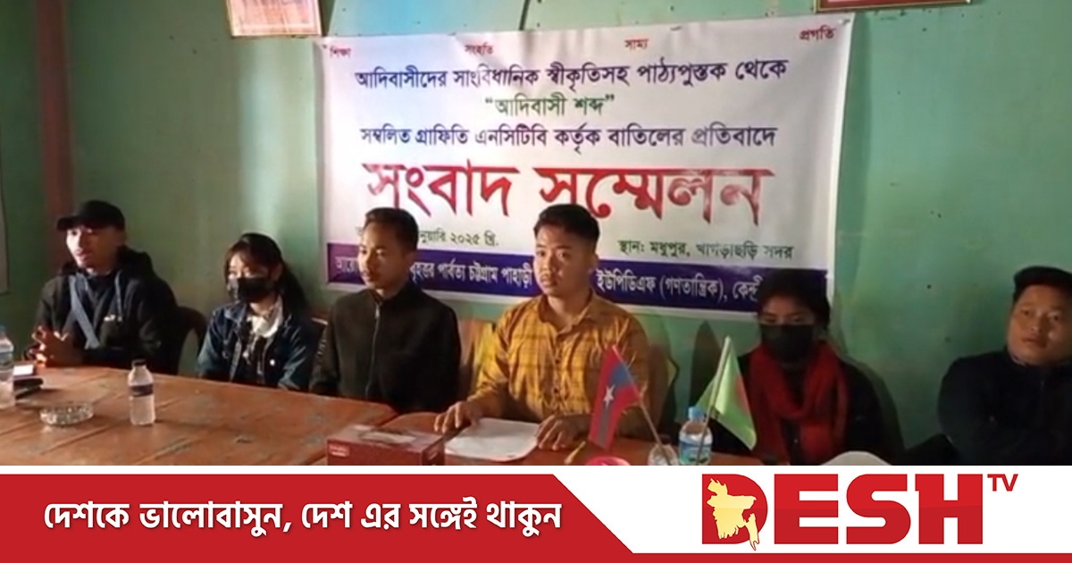 আদিবাসীদের সাংবিধানিক স্বীকৃতিসহ পাঠ্যপুস্তক থেকে আদিবাসী শব্দ সম্বলিত ‘গ্রাফিতি’ বাতিলের প্রতিবাদে সংবাদ সম্মেলন করেছে ইউপিডিএফ গণতান্ত্রিক সমর্থিত পাহাড়ি ছাত্র পরিষদ।
