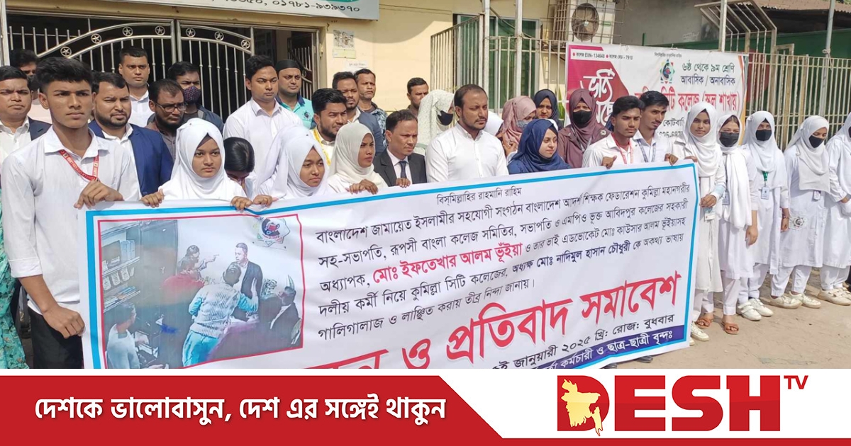 মানববন্ধনে শিক্ষার্থী ও শিক্ষকরা বলেন, জামায়াতে ইসলামীর সহযোগী সংগঠন বাংলাদেশ আদর্শ শিক্ষক ফেডারেশন কুমিল্লা মহানগরীর সহ-সভাপতি, রূপসী বাংলা কলেজ সমিতির সভাপতি ও এমপিওভুক্ত আবিদপুর কলেজের সহকারী অধ্যাপক মো. ইফতেখার আলম ভূঁইয়া ও তার ভাই অ্যাডভোকেট মো. কাউসার আলম ভূঁইয়াসহ দলীয় কর্মী নিয়ে কুমিল্লা সিটি কলেজের অধ্যক্ষ মো. নাদিমুল হাসান চৌধুরীকে অকথ্য ভাষায় গালিগালাজ ও লাঞ্ছিত করেছে। এ ঘটনায় আমরা তীব্র নিন্দা জানায়।