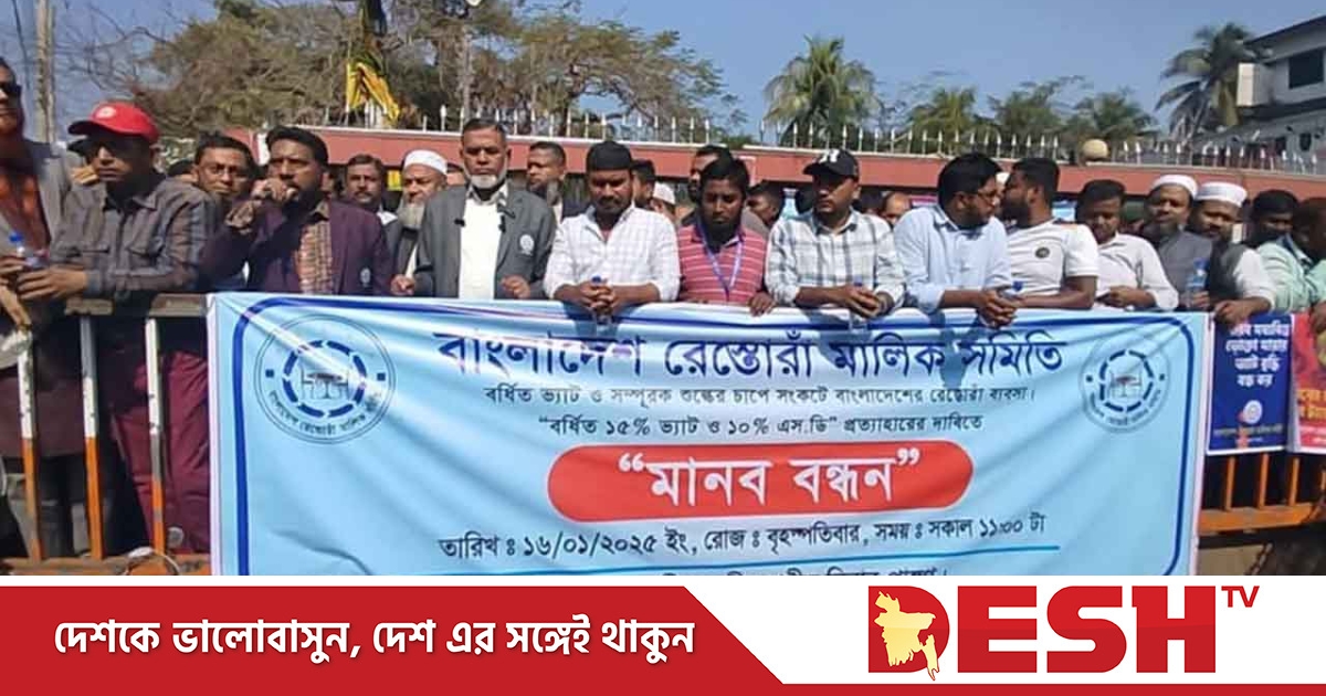 আগামী ২৪ ঘণ্টার মধ্যে বর্ধিত ভ্যাট প্রত্যাহার না করলে কঠোর আন্দোলনের হুমকি দিয়েছে রেস্তোরাঁ মালিক সমিতি। তারা বর্ধিত মূল্য সংযোজন কর (ভ্যাট) ১৫% ও সম্পূরক শুল্ক ১০% প্রত্যাহারের দাবিতে ফেনীতে মানববন্ধন করেছে।