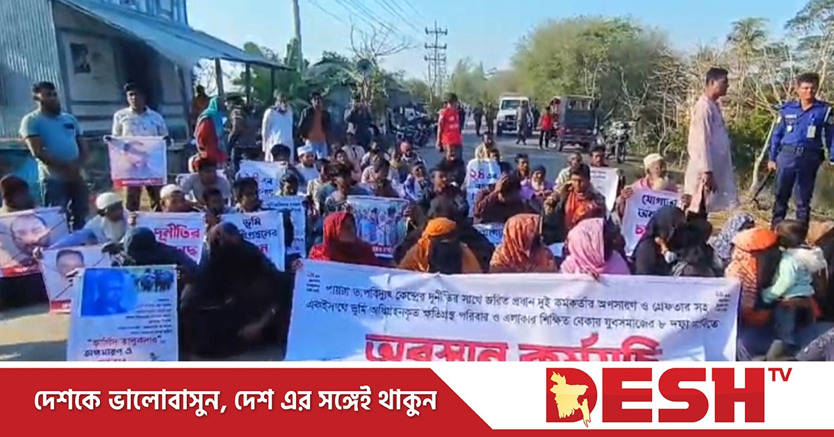 ভূমি অধিগ্রহণকালীন প্রতিশ্রুতির বাস্তবায়ন, প্রকল্পের কারণে এলাকার জলাবদ্ধতা নিরসন ও পটুয়াখালীর পায়রা ১৩২০ মেগাওয়াট তাপবিদ্যুৎ কেন্দ্রের ব্যবস্থাপনা পরিচালকে এবং প্লান্ট ম্যানেজারের অপসারণসহ ৯ দফা দাবিতে অবস্থান কর্মসূচি পালন করেছে ভূমি অধিগ্রহণে ক্ষতিগ্রস্থ পরিবারের সদ্যসরা।