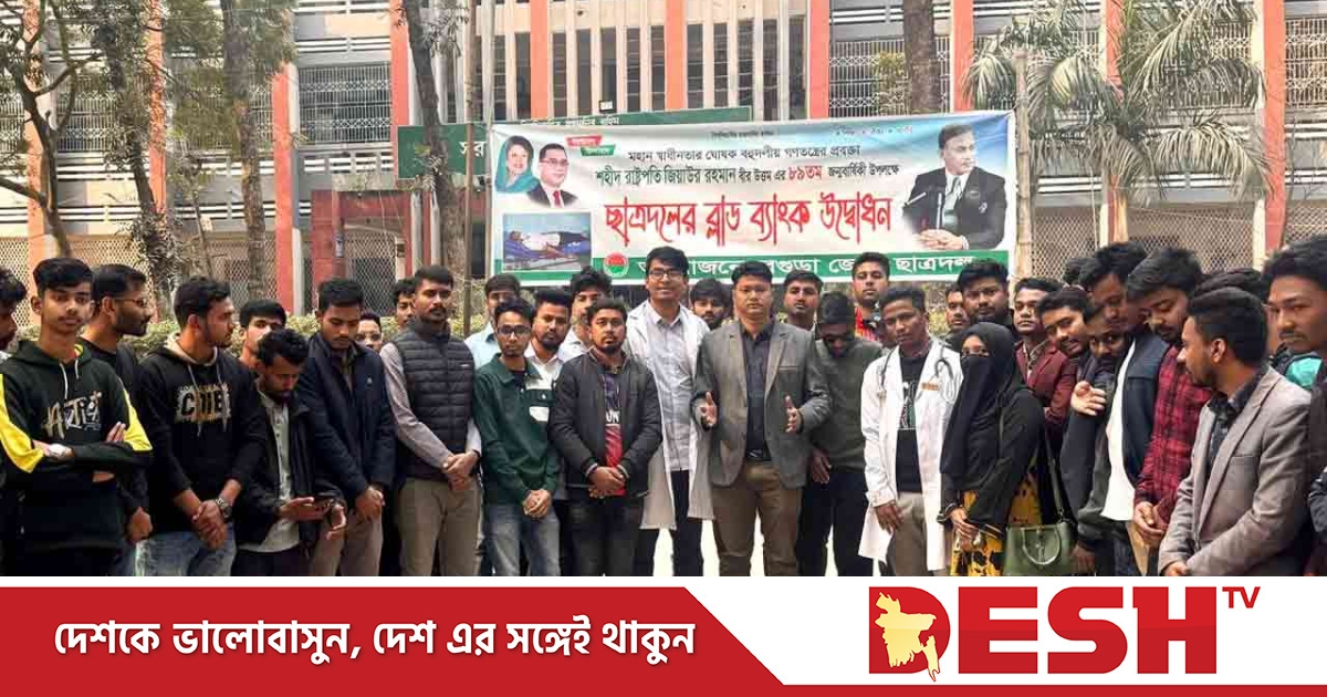 শহীদ রাষ্ট্রপতি ও বিএনপি'র প্রতিষ্ঠাতা জিয়াউর রহমানের ৮৯তম জন্মবার্ষিকী উপলক্ষে বগুড়ায় ব্লাড ব্যাংকের উদ্বোধন করেছে জেলা ছাত্রদল।