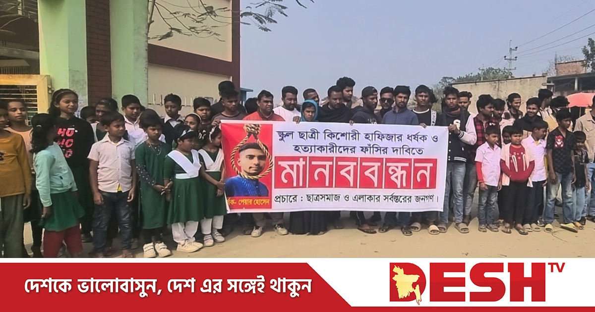 মাদারীপুরের শিবচরে হাফিজা আক্তার (১৪) নামের এক স্কুলছাত্রীকে ধর্ষণ ও হত্যা মামলার প্রধান আসামির গ্রেপ্তার দাবিতে মানববন্ধন করেছেন নিহতের পরিবার ও সহপাঠীরা।