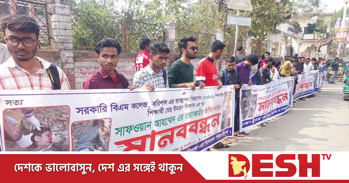 বরিশালের গৌরনদীতে জমিজমা বিরোধকে কেন্দ্র করে শিশু সাফওয়ান হত্যার বিচার চেয়ে বরিশালে মানববন্ধন ও বিক্ষোভ সমাবেশ করেছে বিএম কলেজ শিক্ষার্থীরা।
