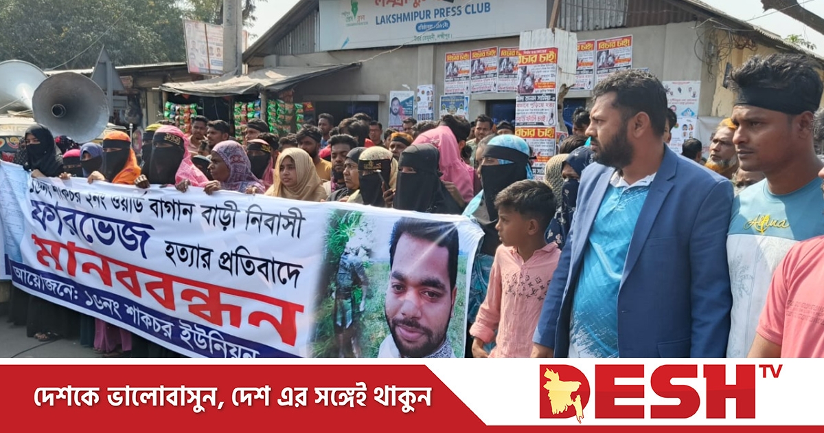 লক্ষ্মীপুরে ব্যবসায়ী মো. ফারভেজ হোসেনের হত্যাকারীদের গ্রেপ্তার ও বিচার দাবিতে মানববন্ধন অনুষ্ঠিত হয়েছে।
