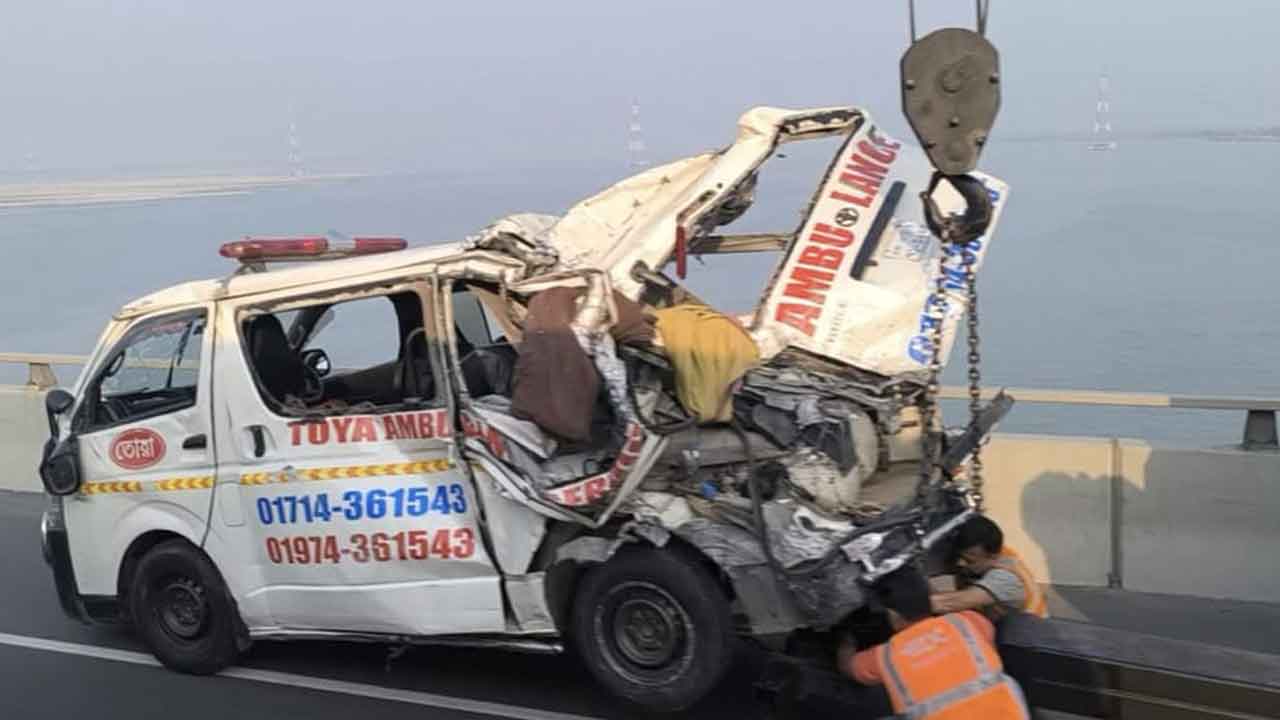 পুলিশ ও স্থানীয় সূত্রে জানা যায়, সোমবার দুপুরে একটি অ্যাম্বুলেন্স পদ্মা সেতু পার হয়ে শিবচরের দিকে যাচ্ছিল। অ্যাম্বুলেন্সটি সেতুর ৩০ নম্বর পিলারের বরাবর আসলে ঢাকা থেকে ছেড়ে আসা ইলিশ পরিবহনের একটি বাস অতিরিক্ত গতির কারণে পেছন থেকে ধাক্কা দেয়। এতে অ্যাম্বুলেন্সের পেছনের অংশ দুমড়েমুচড়ে গিয়ে অ্যাম্বুলেন্সে থাকা ৫ জন যাত্রী গুরুতর আহত হয়। পরে খবর পেয়ে সেতু কর্তৃপক্ষের পেট্রোল টিম আহত ব্যক্তিদের উদ্ধার করে দ্রুত চিকিৎসার জন্য শিবচরের পাঁচ্চর রয়েল প্রাইভেট হাসপাতালে পাঠায়।