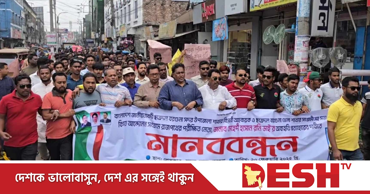 বৃহস্পতিবার (২০ ফেব্রুয়ারি) সকাল ১১টায় বরগুনা প্রেসক্লাবের সামনে আয়োজিত মানববন্ধনে কয়েক হাজার নেতাকর্মী অংশ নেন। ঘণ্টাব্যাপী এই কর্মসূচিতে বক্তারা মেহেদী হাসান রনির অব্যাহতি আদেশকে ‘রাজনৈতিক ষড়যন্ত্র’ বলে দাবি করেন এবং দ্রুত সিদ্ধান্ত প্রত্যাহারের আহ্বান জানান।