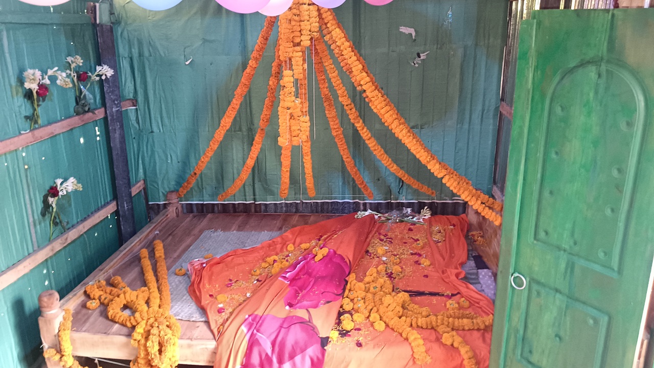 বিয়েবাড়িতে গান বাজানোকে কেন্দ্র করে বরপক্ষকে তুমুল মারপিটের পর বরকে বাসর ঘর থেকে বের করে বাসর ঘর ভাঙচুর করা হয়েছে।