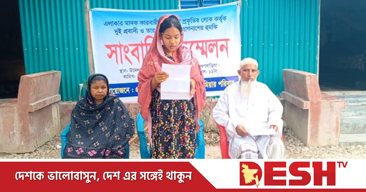 ব্রাহ্মণবাড়িয়ার আখাউড়ায় পরিবারের নিরাপত্তা চেয়ে সংবাদ সম্মেলন করেছে এক প্রবাসীর পরিবার।