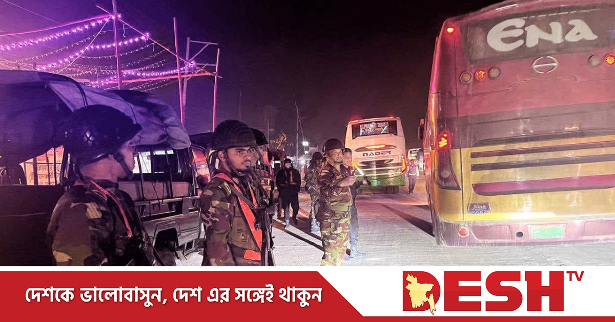 দূরপাল্লার যাত্রীদের রাতের নিরাপদ যাত্রা নিশ্চিতে বগুড়ার মহাসড়কে বিশেষ চেকপোস্ট পরিচালনা করছেন বাংলাদেশ সেনাবাহিনী।