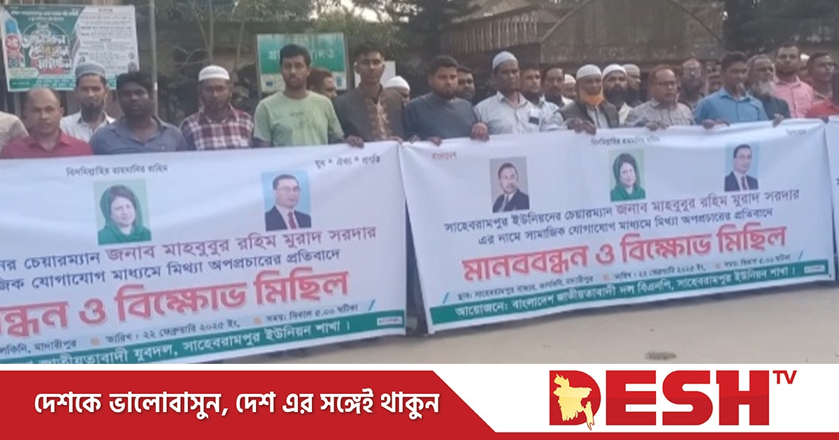 শনিবার (২২ ফেব্রুয়ারি) বিকেলে উপজেলার সাহেবরামপুর ইউনিয়ন পরিষদ চত্বরে এ মানববন্ধন অনুষ্ঠিত হয়েছে।