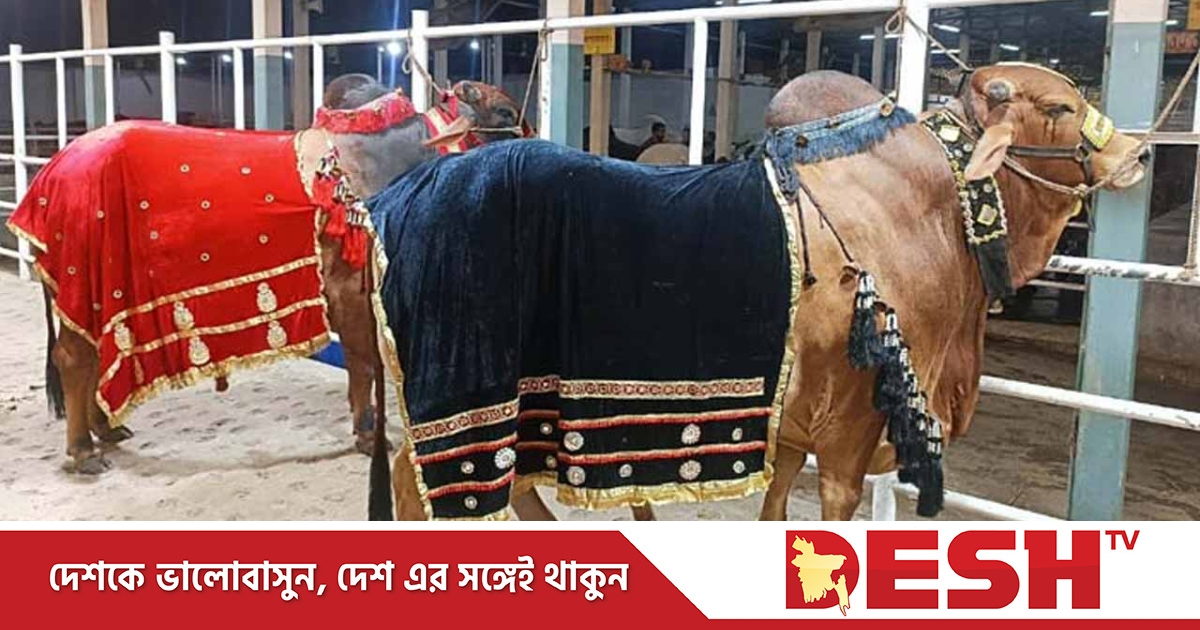 আড়াই বছর বয়সের দেশাল জাতের ২০ মণ পাঠানের দাম হাঁকা হচ্ছে ১০ লাখ টাকা। লাল-হালকা কালো রঙের গরুটি লম্বায় ১০ ফুট ও উচ্চতায় সাড়ে ৫ ফুট। আর ১৮ মণ জায়েদ খানের দাম হাঁকা হচ্ছে ৮ লাখ টাকা। লাল-কালো রঙের গরুটি লম্বায় ১০ ফুট ও উচ্চতা সাড়ে ৫ ফুট। প্রতিদিন গরু দুটির খাদ্য তালিকায় রয়েছে ভুসি, সবুজ ঘাস এবং খড়।